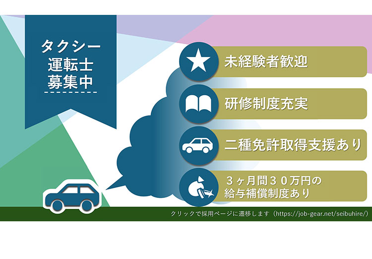 一方、タクシーは駅で待機している車にご乗車になる、街中で乗車意思を示しご利用いただく、お電話にて配車依頼をされてお車がお迎えに向かいご乗車いただくなどが一般的です。